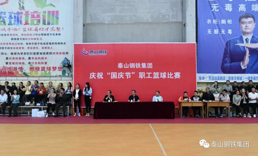 金秋送爽,丹桂飘香,民族华诞,举国欢腾。在国庆节即将来临之际,泰山钢铁集团举行了庆祝“国庆节”职工篮球比赛。今天下午,职工篮球比赛决赛在赢城篮球馆举行。集团党委书记、董事长、总裁王永胜出席观看了比赛,为优胜队伍颁奖,并发表了热情洋溢的讲话。集团党委副书记、工会主席杜跃进出席活动。工会副主席朱正乾主持仪式。集团各单位党政主要负责同志,干部职工代表,参赛选手共400余人参加活动。